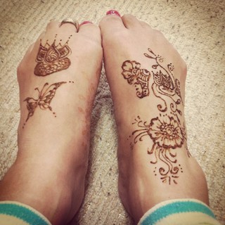 楽しくて色んな所に描き描き・・・。両足甲にも意味不明な