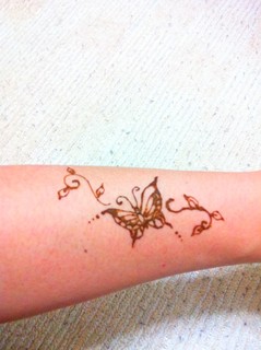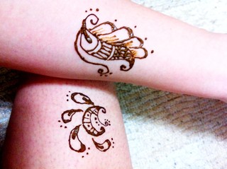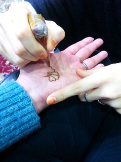 腕に描いた物が綺麗な明るいオレンジ色に染まりました。