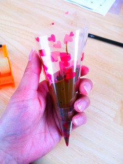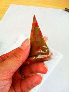 コーンを作って詰めます。コーンがなかなか思うようにならず