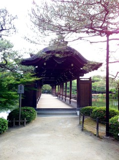庭園の池を渡る橋。池には亀、鯉が生息していて、息子は亀を