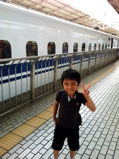 新幹線車内。新幹線大好きな息子はとても楽しんでいる様子。