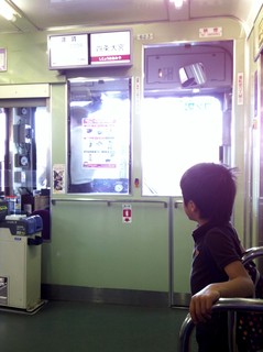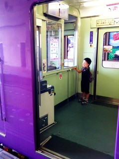 嵐電車内。めちゃめちゃ開放的な運転席。こういうのも子供のみならず