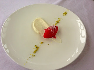 マスカルポーネにイチゴのシャーベットが乗ったデザート!