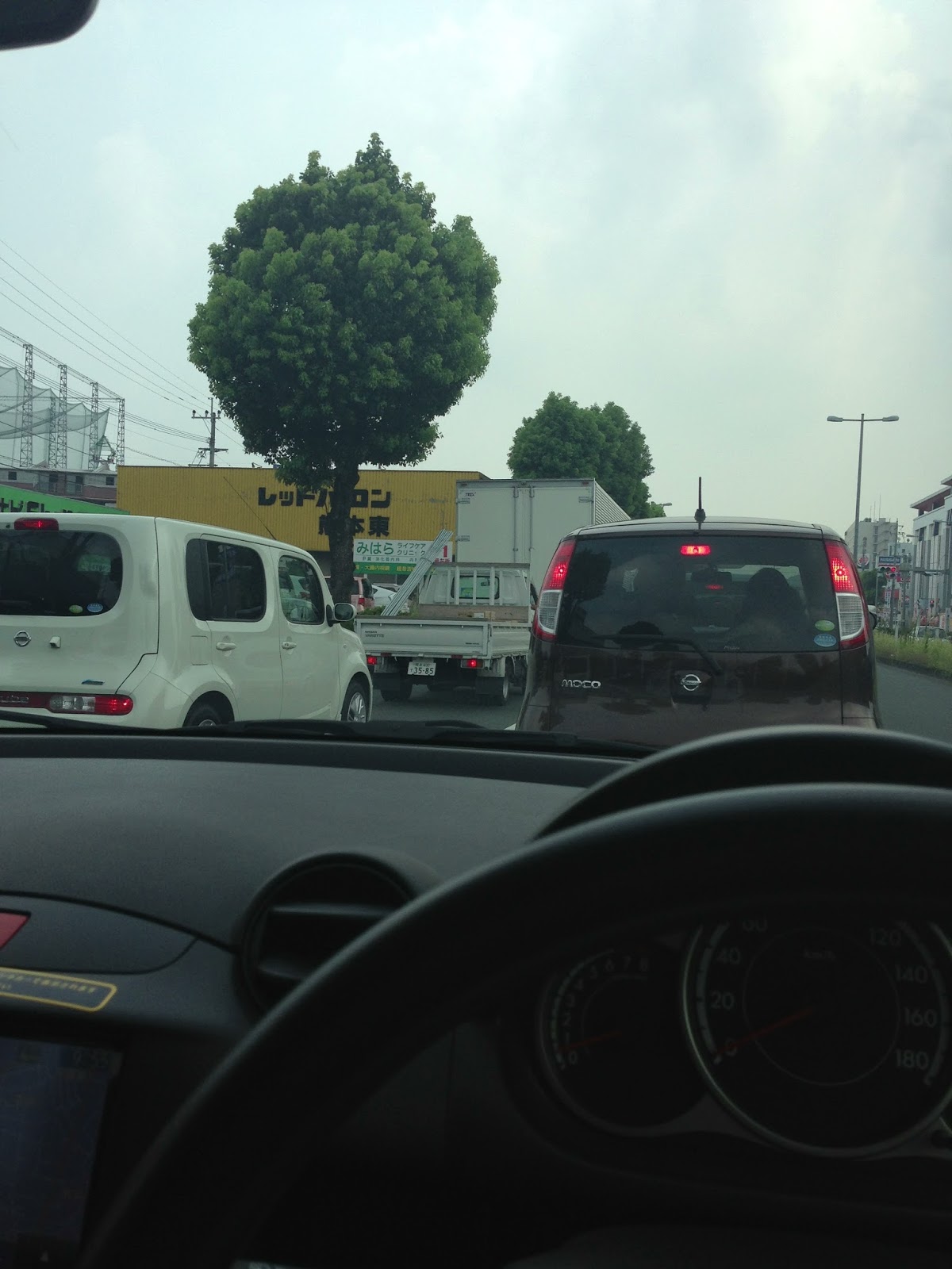 熊本着いて予約していたレンタカーを運転中。